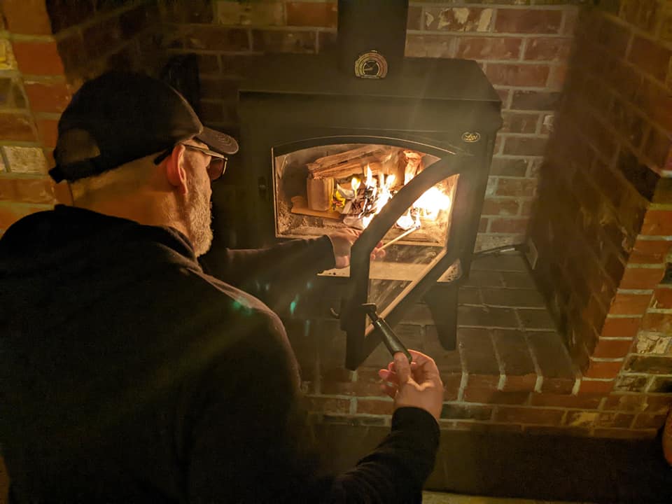 The Lodge is finally getting some warmth for the fall and winter season. We lit our first warming fire for the downstairs residents. The Yellow Beast was quite happy to feel the warmth too.
